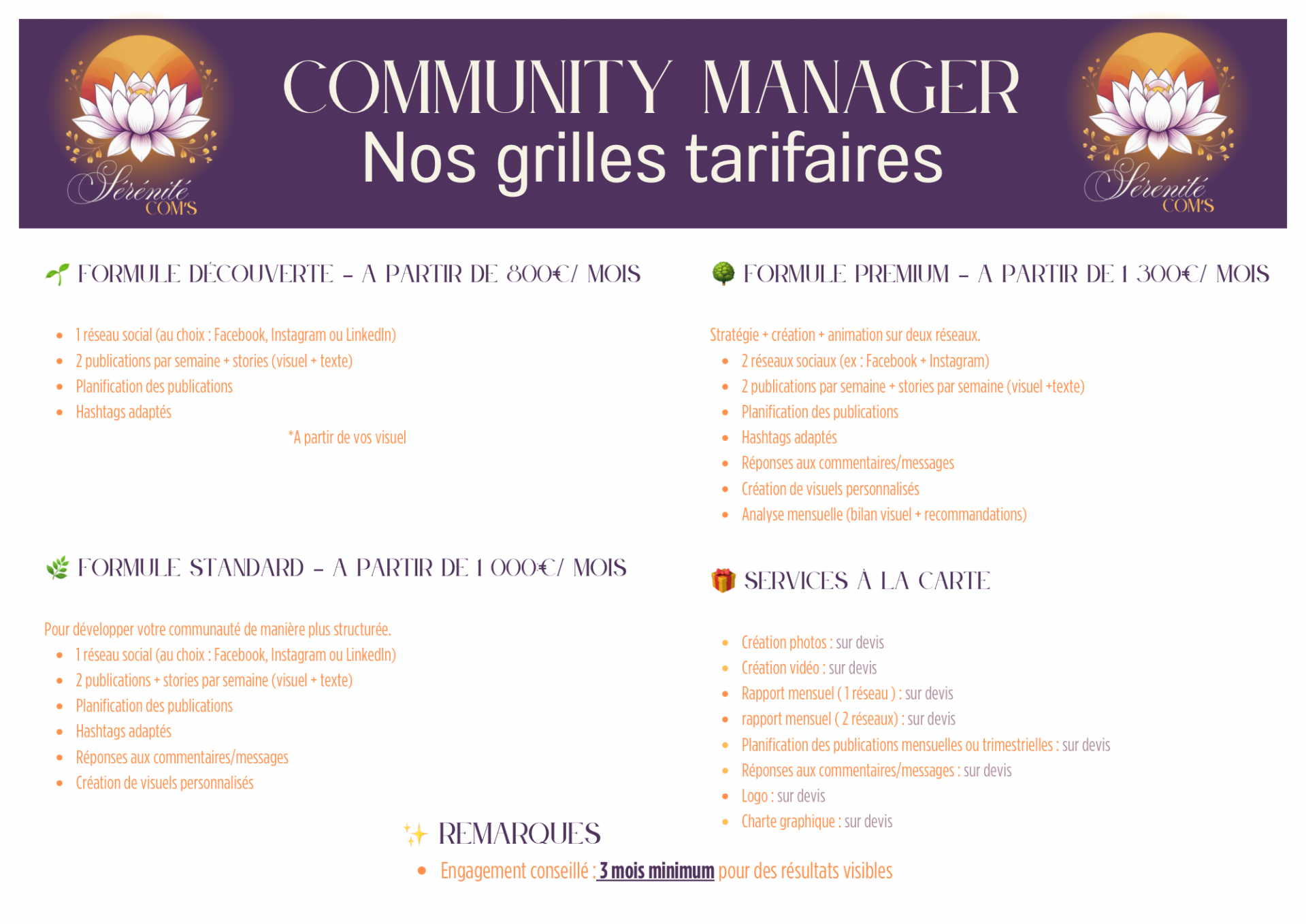 Stratégie + création + animation sur deux réseaux. Pour voir les services proposer clic ⬇️